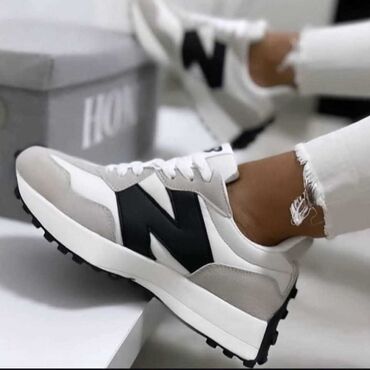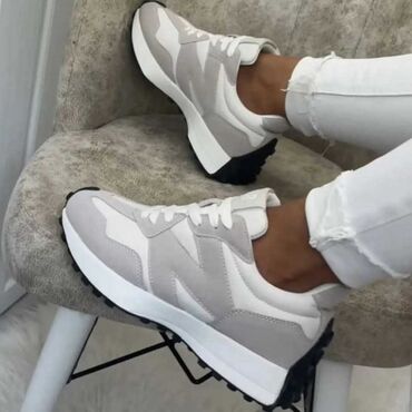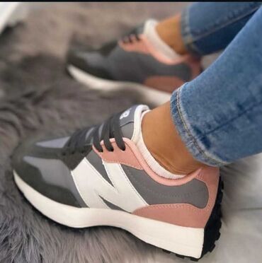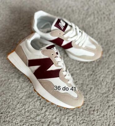 New Balance 327 patike sa prepoznatljivim 'N' logotipom. Dostupne su u različitim kombinacijama boja, uključujući roze-belu, sivu i bordo-belu varijantu, što ih čini lako uklopivim u različite odevne kombinacije. Idealne za svakodnevno nošenje, pružaju udobnost i stil.