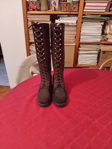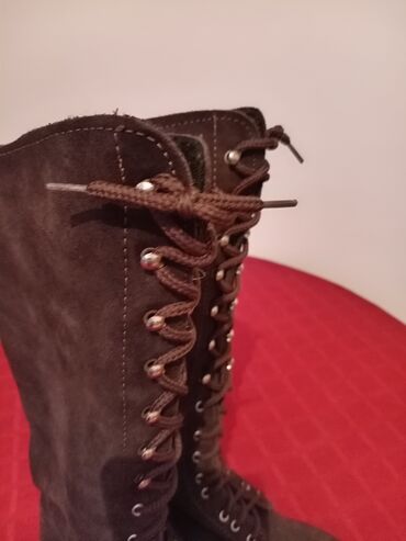 Do kolenaNOVE, italijanske čizme od antilopa na pertlanje br 37. Čizme su postavljene, tople su i pogodne i za osobe sa, jačim listovima, imaju gumeni đon.