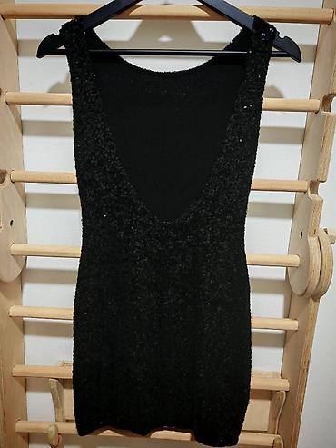 Večernja crna haljina, na bretele, midi dužine uz telo, sa golim leđima, sva od šljokica, postavljena. Materijal je viskoza elastin.