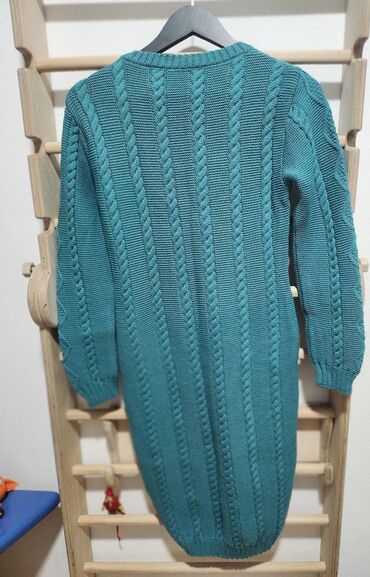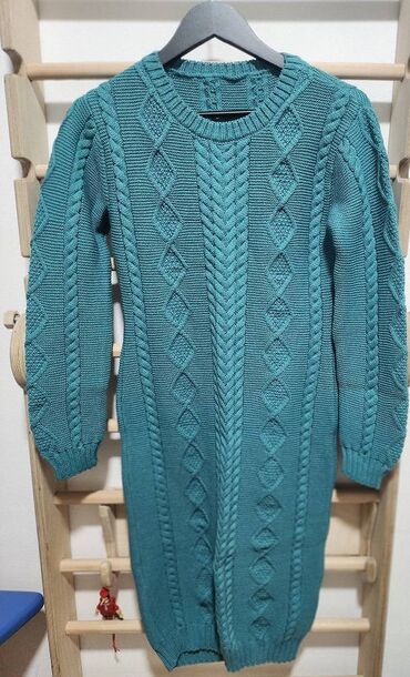 DomaćeHaljina od vune i akrila, napred rađena sa debljim pletenicama, a pozadi sa tanjim. Dužina do kolena, Uni veličine, mint zelena boja ili Tiffany plava, nova nenošena.