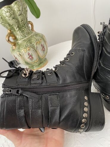 Crne kožne bajkerske čizme sa ukrasnim detaljima.