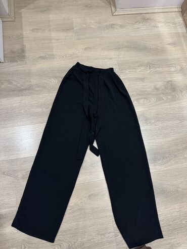 Crne široke pantalone sa elastičnim pojasom. Lagani, komotni kroj sa ravnim nogavicama, pogodne za svakodnevno nošenje ili opuštene kombinacije. Materijal deluje mekan i prijatan na dodir, lako se ...2 500 RSD
