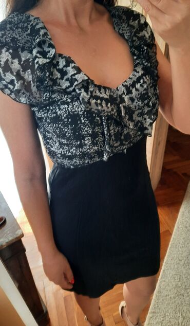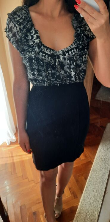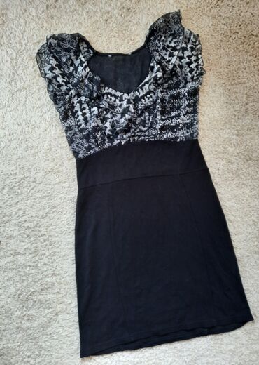 haljina uz telo,gornji deo dekoltiran leprsav, donji crni sa elastinom.
