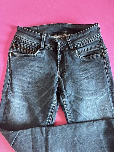 - Detalji: kontrastni šavovi, zadnji džepovi sa talasastim ukrasnim prošivom, kožna etiketa Pepe Jeans na pojasu