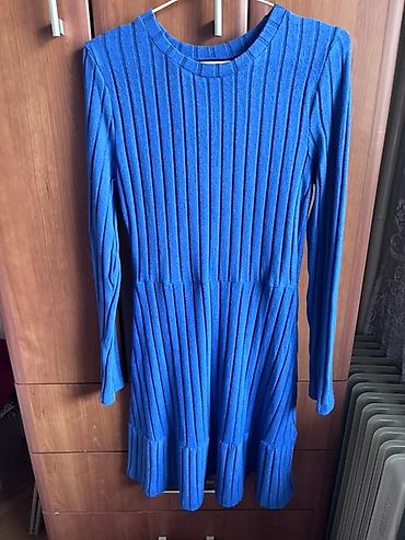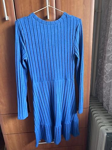 Plavo rebrasto džemper-haljina