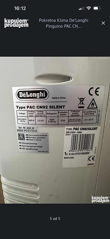 Pokretna klima De’Longhi Pinguino PAC CN – 10.000 BTU/h - Kapacitet