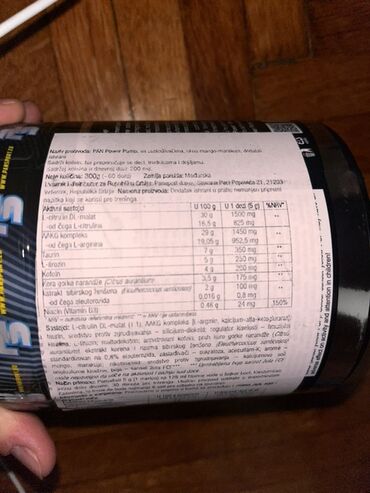 - Visok sadržaj kofeina: 200 mg u dnevnoj dozi / 100 mg po merici (napomena na etiketi: visok sadržaj kofeina, nije preporučljivo za decu, trudnice i dojilje)