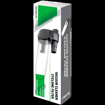 Filter za usisavač Cyclone Cyclone filter je jedinstven uređaj koji je pričvršćen za usisavač, odvaja čestice i predmete prljavštine od veoma fine prašine koristeći centrifugalne sile. Oni se odlažu u prozirnu plastičnu čašu. Vakuumska kesa ostaje prazna duže i samo prikuplja fine čestice prašine, traje do 20 x duže pre pražnjenja. Više nema dodatnog troška za kupovinu kesa, sve što treba učiniti je jednostavno isprazniti i oprati kasetni filter. Prednosti filtera : jednostavna montaža, lako pražnjenje i održavanje, konstantna snaga usisavanja