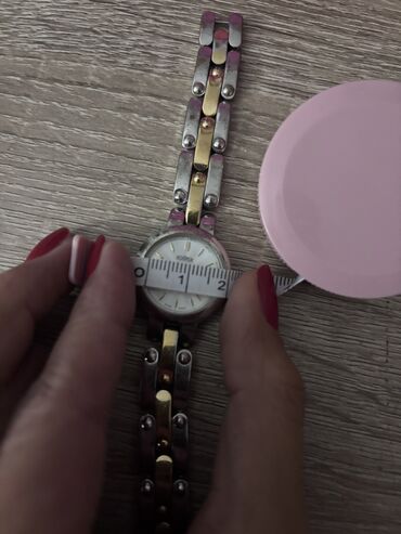 Uniseks ručni sat sa kvarcnim mehanizmom. Srebrne je boje, sa okruglim kućištem koje je ukrašeno detaljima nalik na cirkone oko brojčanika. Brojčanik je svetle boje, sa jasno označenim brojevima 12...