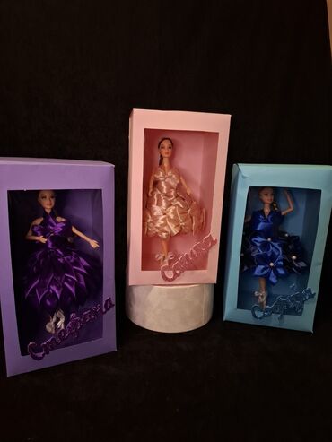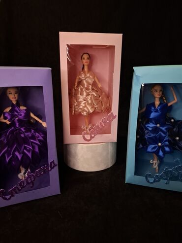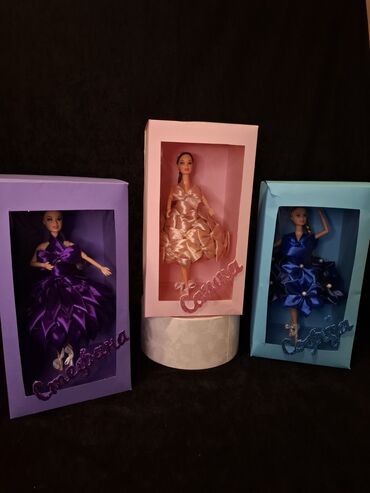 - Svaka lutka dolazi u dekorativnoj kartonskoj kutiji sa prozirnim frontom za izlaganje. Kutije u boji odgovaraju haljini (ljubičasta, nežno roze, svetloplava)