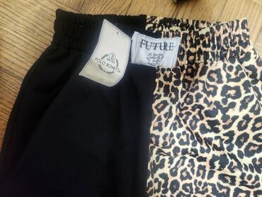 Drugi proizvođačNOVO-pantalone na gumu, sastava 85 % pamuk, 5% elastin i 10% poliester, otkačene, a ujedno praktične, nogavice šire, lepo padaju, guma u struku što olakšava kad su u pitanju putovanja, duge šetnje i za kombinovanje za sportsko elegantnije stvari. Jedna nogavica crna, druga animal print. Nove sa etiketom, veličina S/M.