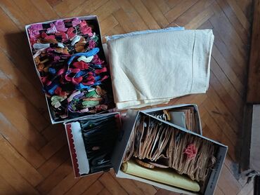 - U kutijama su dodatno stare kovertice sa razvrstanim koncem i priborom/uzorcima (vidljivo na fotografijama).