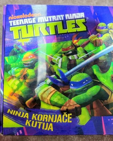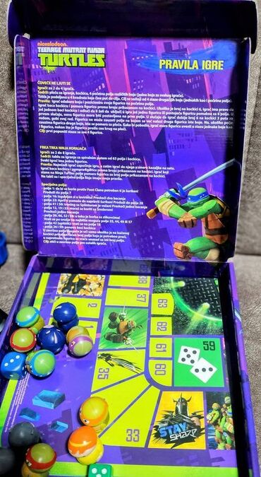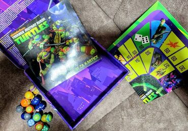 O trošku kupcaIgra Nindža kornjače, korištena ali jako retko i očuvana savršeno, ali ne znam da li su sve figure na broju, tj. da li smo ih tada sve sakupili. U kutiji se nalaze tabla za igru, sa obe strane je društvena igra, figure i dve kockice, album sa sličicama, skroz ispunjen.Sve je spakovano u kutiju sa preslikavanjem slike, u zavisnosti od nagiba.