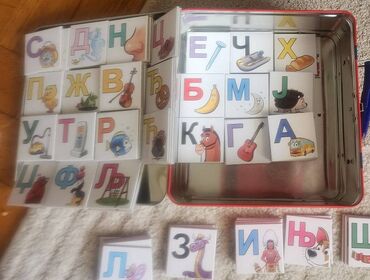 Set se sastoji od Slovarice sa knjigom i 138 slova u metalnom koferu