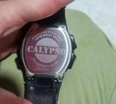 Muški sat, Calypso, sa crnom silikonskom narukvicom , korišćen ali očuvan. Vidljivi znak korišćenja je ogrebotina na čeličnom kućištu, na poleđini. Stoga, ne ometa sam rad sata,i što su malo blago izguljen ćošak, na dusmetu sa strane.Čelično kućište sa svetlim ekranom za bolje i uočljivije brojeve.