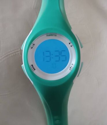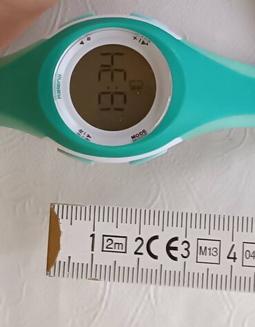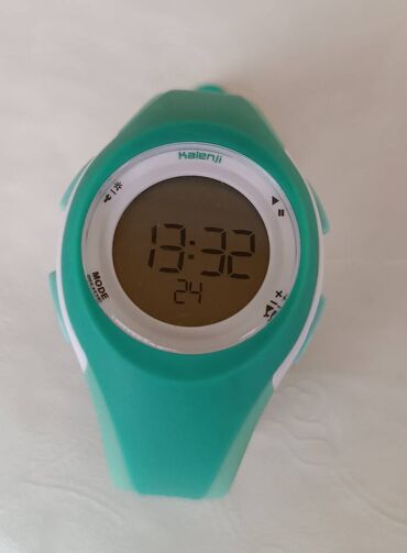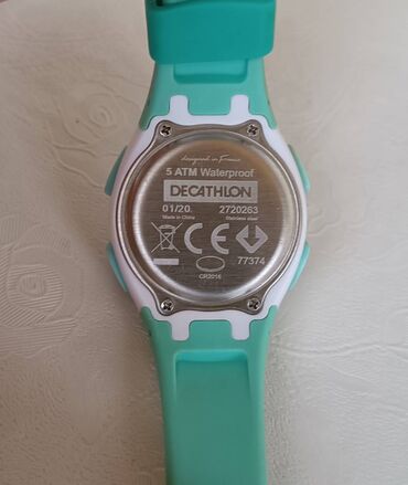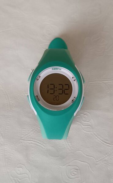 O trošku kupcaSportski sat Decathlon Kalenji w200 s ženski model. Boja pastelno zelena. Stavljena nova baterija. Funkcije: vreme i datum; štoperica; timer; alarm; osvetljenje displeja. Dimenzije: širina 35mm, ukupna dužina sa narukvicom 215mm, debljina 11mm, prečnik displeja 18mm. Ima manje ogrebotine što ne utiče na njegovu funkcionalnost.