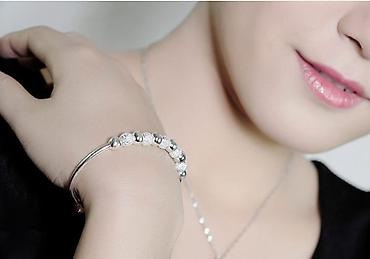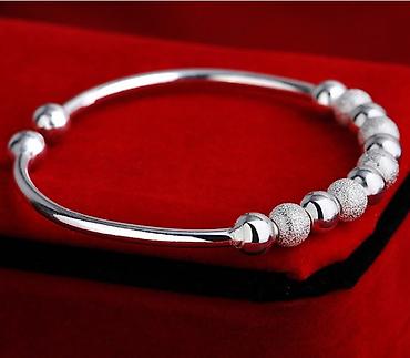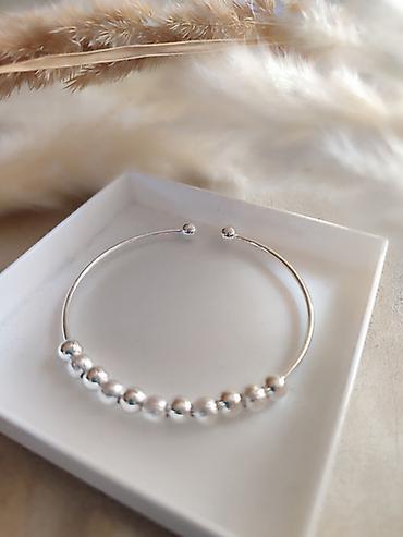 - Dizajn: poluotvorena bangle narukvica sa nizom kuglica na gornjem delu.