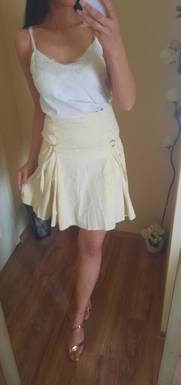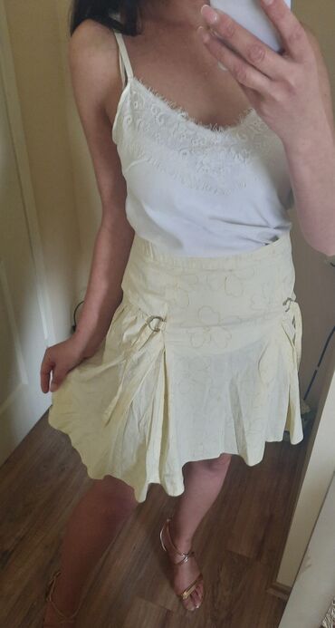 Svetlo zuta suknjica sa dezenom cvetova