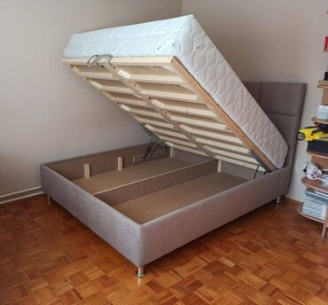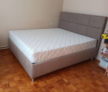 Ukreštene tapacirane krevete sa visokim, dugmićima prošivenim uzglavljem (chesterfield stil). Dizajn sa dubokim prošivima na uzglavlju i bazi, dostupno u više boja (bež, siva, tirkizna). Stabilne n...