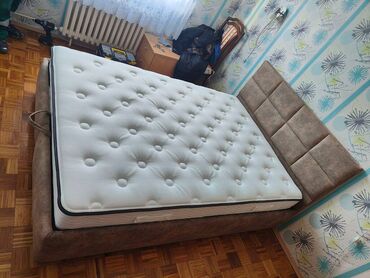 Ukreštene tapacirane krevete sa visokim, dugmićima prošivenim