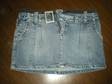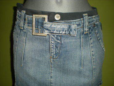 Ultra kratak minić od teksasa, sa crnim gumiranim pojasem.