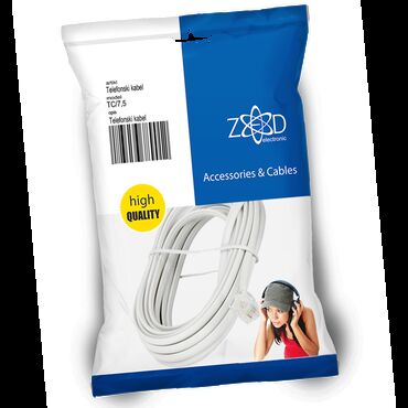 Telefonski kabel sa konektorima, dužina 5 metara. Telefonski kabel sa 4 aktivne žice visokog kvaliteta, sa konektorima RJ11 (4/6), dužina 5 met. Blister pakovanje sa bar kodom, 1 kom.