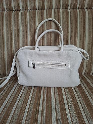 - Materijal: kombinacija izdržljivog platna i eko kože (strane/dno i ručke od eko kože).