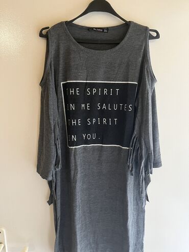 Odeća i obuća – detaljan opis 1) Tunika “Ohio Life” - Veličina: S - Kroj: raglan rukavi tričetvrt, okrugli izrez - Boje: crno telo sa belim printom “Ohio Life”, rukavi sivi sa prugama - Materijal:...800 RSD