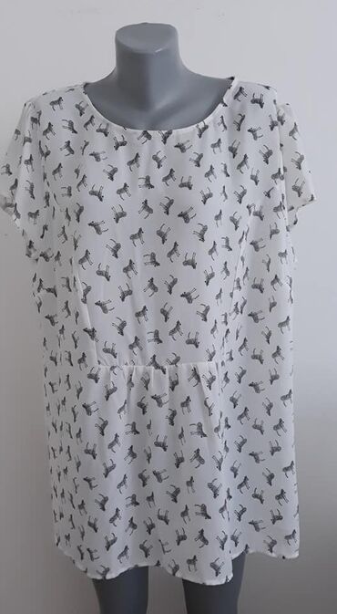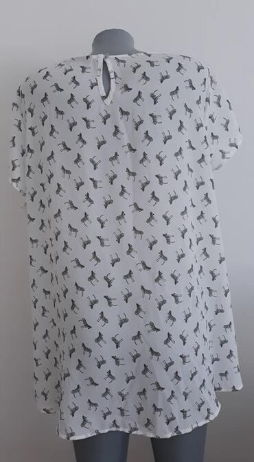 Tunika od viskoze i pamuka , sa V izrezom, animal printa, kraćih rukava, M veličine, dobro očuvana, veoma praktična, lagana, bez obzira na kraće rukave nosiva kroz sva godišnja doba. Prednji deo do...
