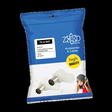 NovoTV utikač + TV utičnica, ugaoni plastični, blister pakovanje sa bar kodom.