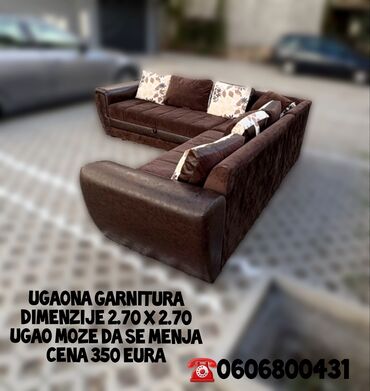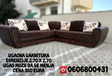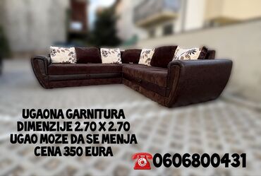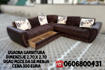 Ugaona garnitura Claudia na razvlacenje poseduje sanduk za posteljinu! Cena je 350 eura. Dimezije su 2.70 x 2.70