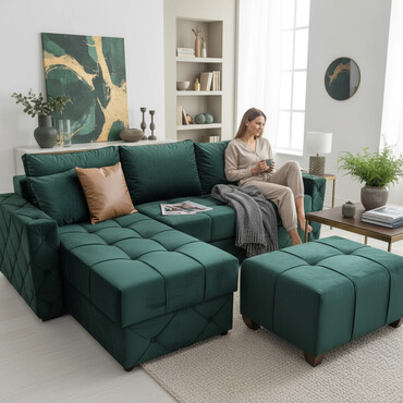 Ugaona garnitura sa ležajem i prostorom za odlaganje - Moderan
