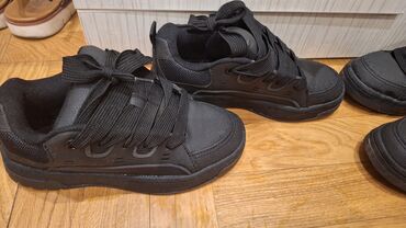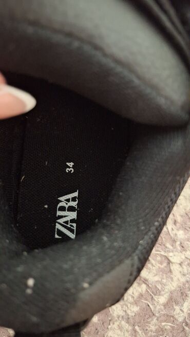 Patike Zara ;1 par =3000 dinara;broj 34 .Crne boje, dizajnirane za udobnost i svakodnevno nošenje. Sa klasičnim vezicama, obezbeđuju sigurno prianjanje. Deblji đon doprinosi amortizaciji i udobnosti tokom hodanja. Jednostavan dizajn omogućava lako kombinovanje sa različitim odevnim stilovima, čineći ih pogodnim za razne prilike, od opuštenih šetnji do svakodnevnih aktivnosti. Njihova uniseks priroda ih čini idealnim izborom za sve. Karakteristike: