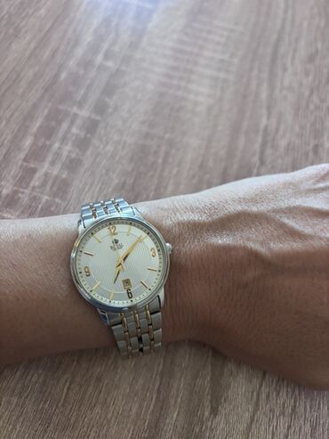 UpotrebljenоElegantan Royal ručni sat sa okruglim brojčanikom bele boje. Kućište je srebrne boje, dok je narukvica kombinacija srebrnih i zlatnih karika, pružajući sofisticiran dvobojni izgled. Brojčanik ima jasne, zlatne numeričke oznake za 3, 6, 9 i 12 sati, uz indikatore datuma na poziciji 6 sati. Kazaljke su takođe zlatne boje, što doprinosi luksuznom izgledu. Idealno za svakodnevno nošenje ili posebne prilike, dodajući notu elegancije svakoj odevnoj kombinaciji. Narukvica se lako podešava i osigurava udobno nošenje tokom celog dana. Ovaj sat je pogodan za sve koji cene klasičan dizajn i funkcionalnost.