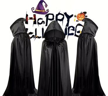 Duga crna pelerina s kapuljačom – kostim za Noć veštica, tematske zabave, cosplay i scensku upotrebu.