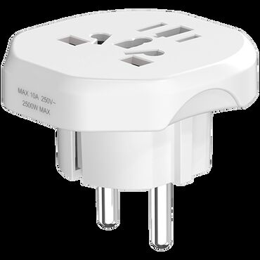 Univerzalni putni adapter, 4 u 1 za priključak raznih uređaja. Prelaz sa SAD / Japan, Australija / Kina, Velika Britanija / Nemačka / Francuska na Euro 2 - polni utikač, Ulazni napon 110V - 250V, max. opterećenje 10 A, max. snaga 2500 W.