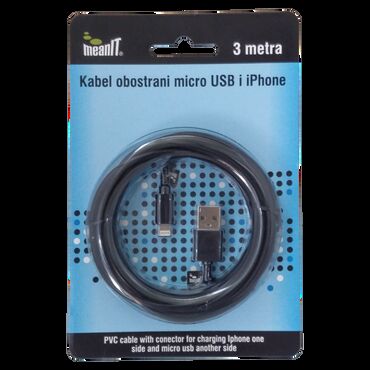 USB kabel za smartphone i iPhone, obostrani micro USB i iPhone 5, 6, 7, 8 i X priključak, dužina kabela 3 metra