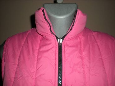 Zenski prsluk tamno zeleni, sa kapuljacom postavljen, duzi sa dzepovima, nosen par puta bez vidljivih tragova.Veličina: