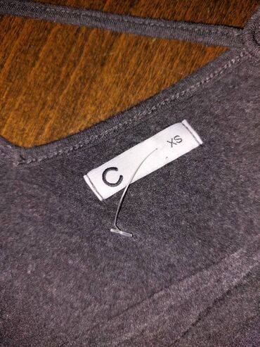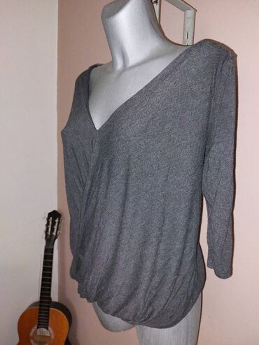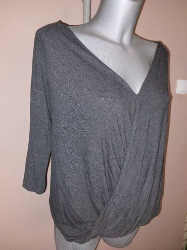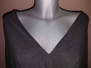 Potpuno nova, nenošena, tamno siva majica, krojena napred u preklop, ležernog pada, sa uzanim 3/4 rukavima.