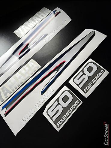Komplet nalepnica za Yamaha vanbrodski motor snage 50 KS (Four Stroke) namenjen je za obnovu izgleda motora ili zamenu dotrajalih fabričkih nalepnica. Dizajn je izrađen u originalnom Yamaha stilu, sa jasno izraženim oznakama YAMAHA, 50 i FOUR STROKE, što motoru daje uredan, fabrički i profesionalan izgled.