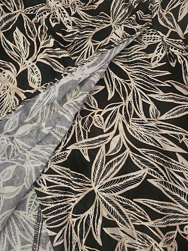 - Uzorak: botanički motiv listova u bež i belim tonovima na crnoj podlozi