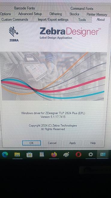 - Softver/driver: ZDesigner TLP 2824 Plus (ver. 5.1.17.7415 – prikazano), kompatibilno sa Windows okruženjem i ZebraDesigner aplikacijom za izradu etiketa.