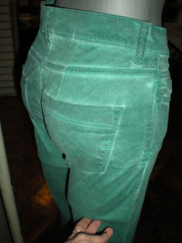 fantastične tamno zelene farmerice, mestimično "kamenovana" boja (oko džepova, šavova...)