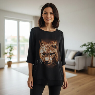 Ženska garderoba – paket različitih komada U ponudi je set modernih ženskih komada različitih stilova i dezena. Paket uključuje: - Haljinu/bluzu od šifona sa velikim crnim tufnama na taupe podlozi...