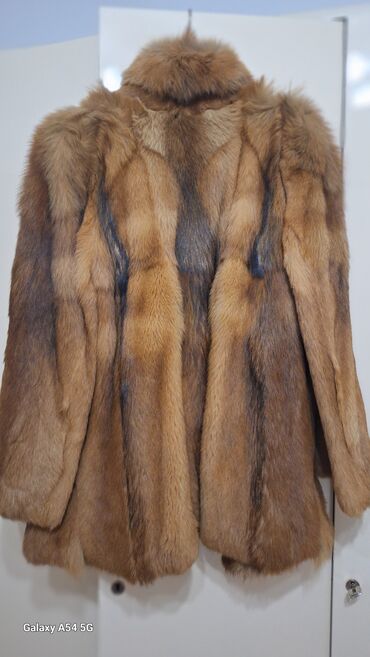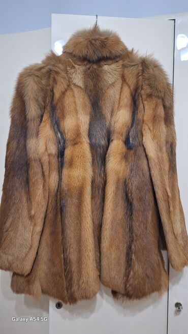 Sa postavomŽenska bunda od prirodnog krzna u toplim smeđe‑zlatnim tonovima sa tamnijim prelivima. Model do kukova, ravnog kroja, sa bogatom kragnom i dugim rukavima. Spoljašnji deo je sačinjен od punih panela krzna sa vidljivom teksturom, a unutrašnjost je obložena glatkom satenskom postavom u bež boji. Zatvara se napred (kuke/skriveni kopčari – vidljivo otpozadi nema dugmadi), bočni šavovi diskretno oblikuju siluetu. Krzno je gusto i mekano na dodir, sa prirodnim sjajem. Idealna za hladne dane, pruža odličnu termoizolaciju i elegantan izgled. Prikazana na ofingeru; fotografije uključuju pogled sa leđa i iznutra kako bi se video pad materijala i postava.