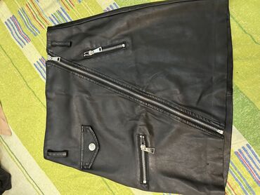 Ženska mini suknja u crnoj boji, izrađena od veštačke kože. Dizajnirana sa asimetričnim rajsferšlusom i detaljima, uključujući dva prednja džepa sa rajsferšlusima, mali preklopni džep sa dugmetom i dodatni ukrasni rajsferšlus. Idealna za kreiranje modernih i smelih odevnih kombinacija.
