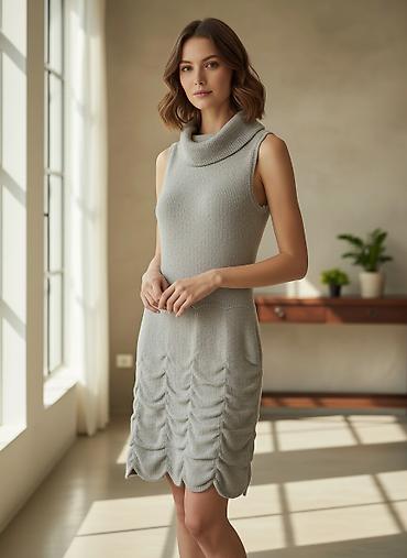 - Dizajn: glatko pletivo u gornjem delu, donji deo sa izuzetno efektnim naborima/valovima i talasasto završnom ivicom