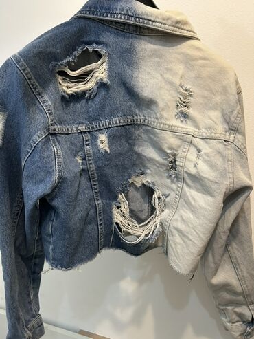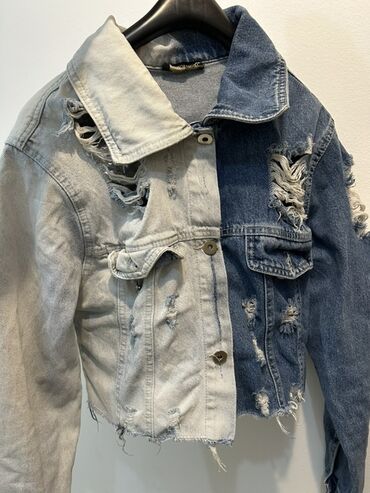Predstavljamo žensku teksas jaknu kratkog kroja sa efektnim pocepanim detaljima, dizajniranu u dvobojnom stilu koji kombinuje svetli i tamni teksas. Jakna poseduje klasičnu kragnu, dugmad na prednjoj strani i na manžetnama, kao i funkcionalne džepove na grudima. Ivice jakne su namerno neravne, pružajući joj moderan i opušten izgled. Idealna je za slojevito oblačenje preko majica ili haljina, dodajući urbanu notu svakoj odevnoj kombinaciji. Savršena za svakodnevne prilike i casual stil.