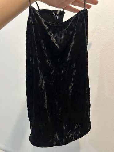 Crna ženska kamisola izrađena od somota, idealna za svečane prilike ili kao moderan dodatak svakodnevnoj garderobi. Jednostavan dizajn sa tankim bretelama omogućava lako kombinovanje sa različitim odevnim predmetima. Udobna i mekana na dodir, pruža elegantan izgled. Materijal je rastegljiv, pogodan za udobno nošenje. Savršen komad za večernje izlaske, proslave ili kao deo slojevitog stila.
