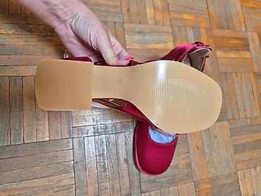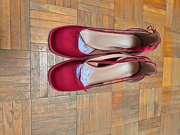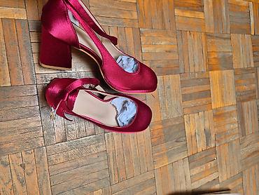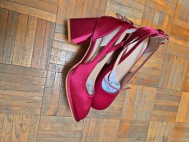 Elegantne ženske cipele na blok štiklu u boji tamnog rubina (satenski